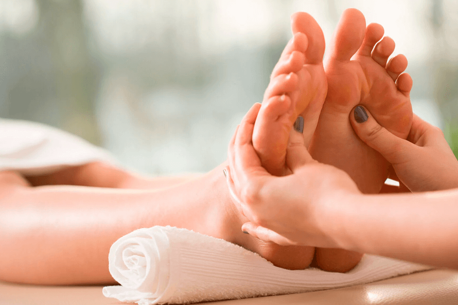Estimula pontos nos pés que refletem órgãos e sistemas do corpo, promovendo relaxamento, alívio de dores como fascite plantar, esporão de calcâneo...